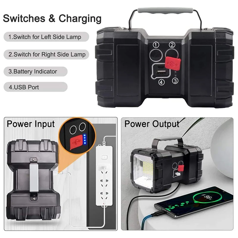 1.Design multi-luz: holofote remoto, interruptor inteligente, antiderrapante e à prova d'água, USB inteligente, carregamento rápido, alça antiderrapante, antiderrapante e durável.